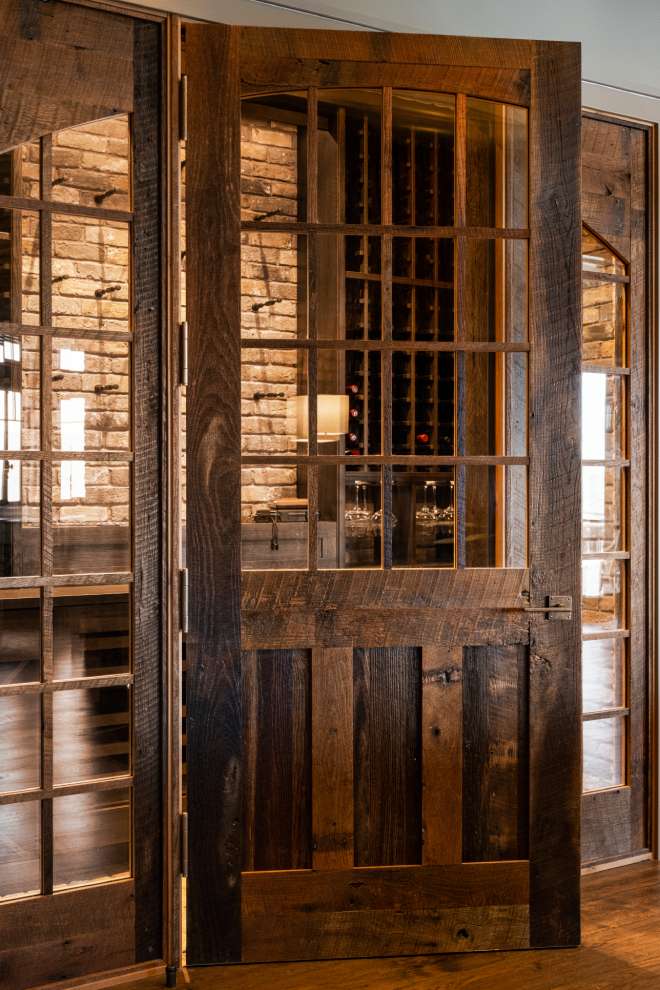 Door Designs are Custom. Doors crafted from Reclaimed Barnwood (weathered face) and finished with Matte Clear Coat