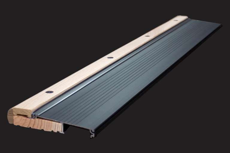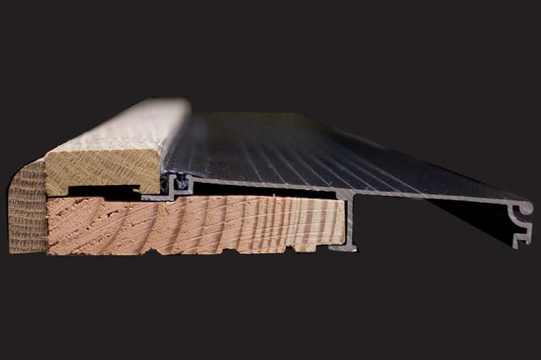 Factory-prehung doors from Sun Mountain include either L-shaped or surface-mount door sweeps with built-in drip caps to divert water. L-shaped sweeps are standard on all 1-3/4″ doors; surface-mount sweeps are used on 2-1/4″ or thicker. If installed on-site, we recommend sealing the top edge of the sweep with silicone to prevent moisture.