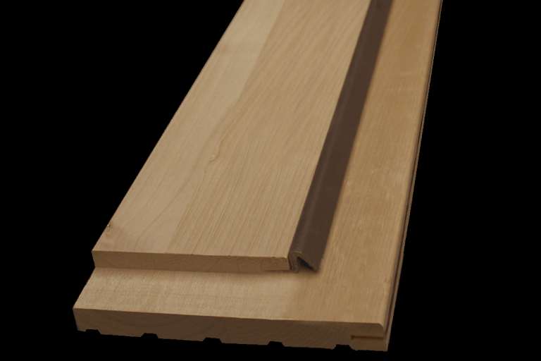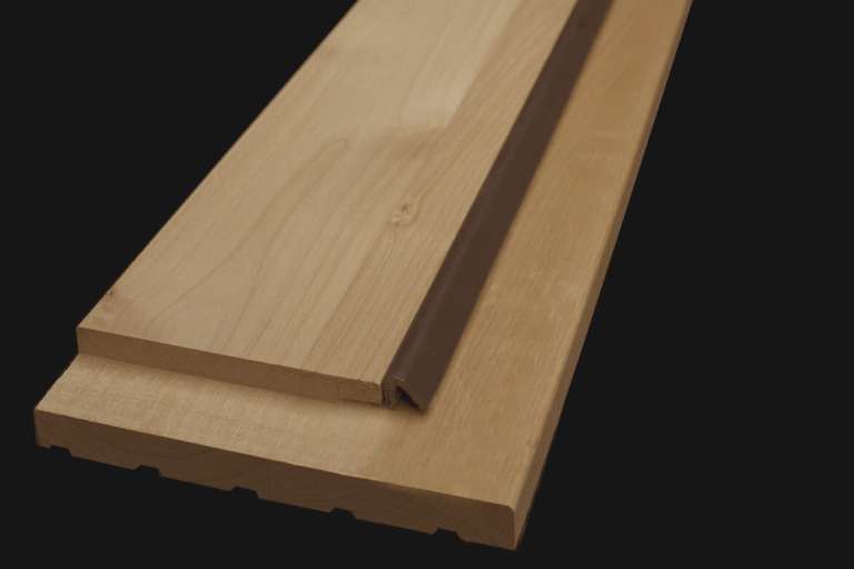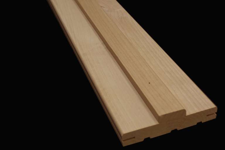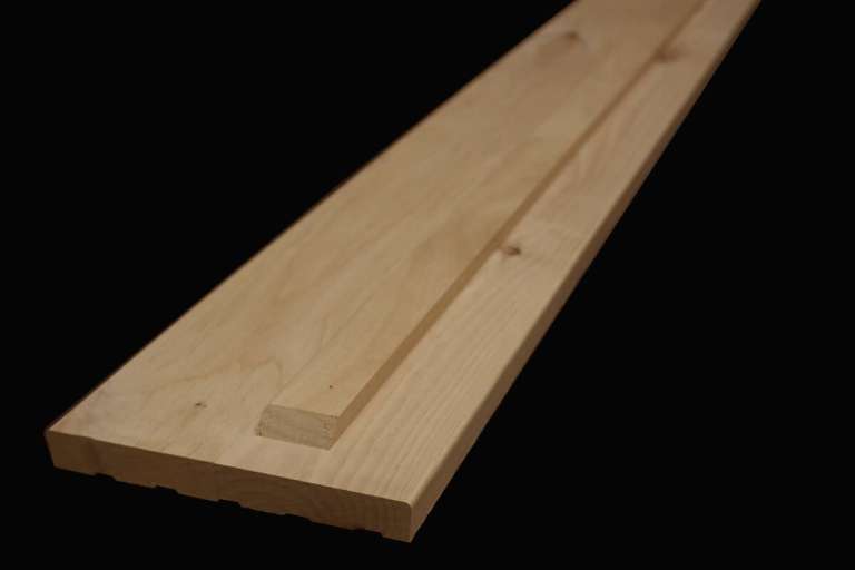 Sun Mountain also offers solid wood “kerfed” flat jambs. A kerf is a slot cut on the edge of the jamb, used for wrapping the drywall corner bead (square or rounded drywall corners), creating a clean, “caseless” opening where the drywall meets the door frame directly, eliminating the need for case mouldings. Kerfs can be applied to one or both sides of the jamb (as shown).