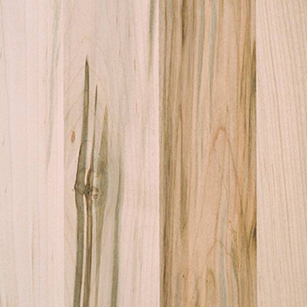 Soft Maple is a hardwood with a straight, close grain pattern and a fine, even texture. Colors may vary significantly—from a creamy white sapwood to a beige or tan-colored heartwood, with green or very dark brown streaks. It is strong and stiff, but has a relatively low shock resistance. Its even texture renders it suitable for painted applications, and it is more durable than Poplar for exterior applications. Janka hardness: 940.