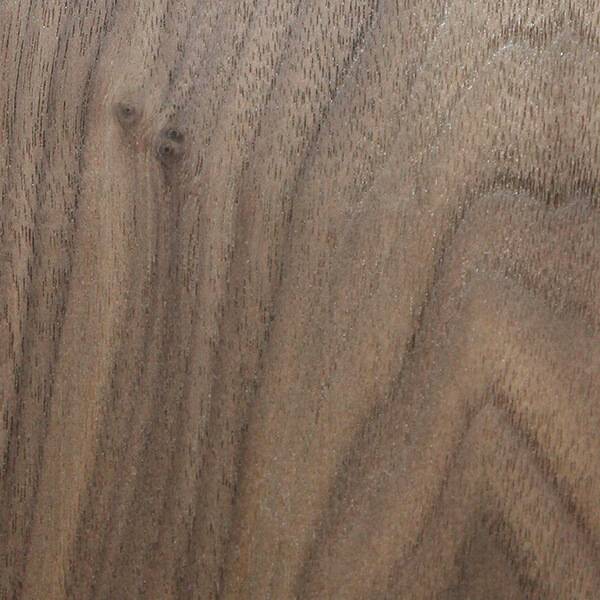 Walnut hardwood has beautiful, distinct differences in color between the nearly white sapwood and the heartwood, which ranges from a deep, rich, almost chocolate brown to a purplish black. The species often has a purplish cast with dark streaks. The grain of Walnut is mostly straight and open, although some boards may have a grain pattern that is burled or curly. The wood surface is generally fairly dull, though it may develop a lustrous patina after many years in use. Janka hardness: 1010.