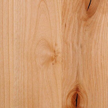 Alder is a relatively soft hardwood with a grain pattern similar to Cherry. The color is uniform and varies slightly from reddish-brown to light tan or honey. Knotty alder has a rustic, rugged look; knots are random in size, quantity and location. Open, star, and split knots are common. Alder accepts stain and finishes very well. Janka hardness: 590.